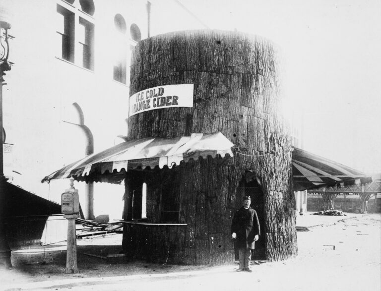 Food trends seemingly take the world by storm all the time (the cronut, spicy chicken sandwiches, unicorn anything, etc.), and those looking to cash in on a craze must quickly come up with their own recipes. At 1893 World’s Columbian Exposition, that popular and much-imitated food item was “orange cider.” Originally made by Huelsenkamp, a Floridian beverage maker and distributor, their orange cider was sold for 5 cents a glass in the Florida, Washington, and Illinois State Buildings, at the Midway by the Ice Railway, at the Big Tree at the side of the Vienna Café, and in the Streets of Cairo.
