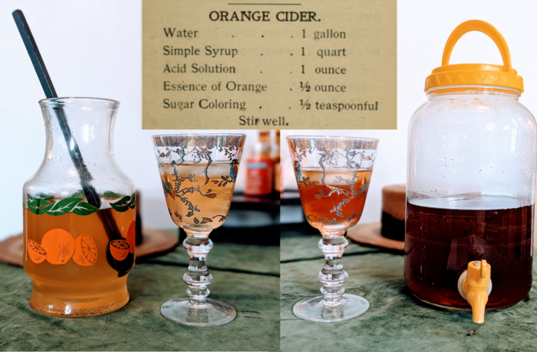 If you’d like to try recreating this infamous historical drink, here are two recipes you can easily make at home. The first one approximates the original Floridian Huelsenkamp formula and is a very refreshing and tasty citrus beverage. It makes a great mixer for a cocktail or a more exciting version of lemonade for a summer picnic! The second recipe is for the cheap knockoff orange cider, and the resulting drink is unusual but not completely undrinkable (especially if you like unsweetened iced tea).