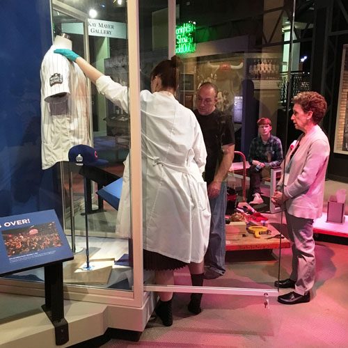 New memories are being made right now as we prepare a small tribute to the team that finally made our dreams come true. On September 16, 2017, the Chicago History Museum opened a new display that features materials from the 2016 World Series. The Cubs donated seats from Wrigley Field in which visitors can sit and two baseballs. Currently on display is a foul ball hit by their star third baseman Kris Bryant in Game 1—the other ball will be shown sometime in the future. On loan are a jersey and a cap worn by MVP utility man Ben Zobrist in Games 3 and 7. These items are on view in the Museum’s core exhibition Chicago: Crossroads of America located on the second floor.