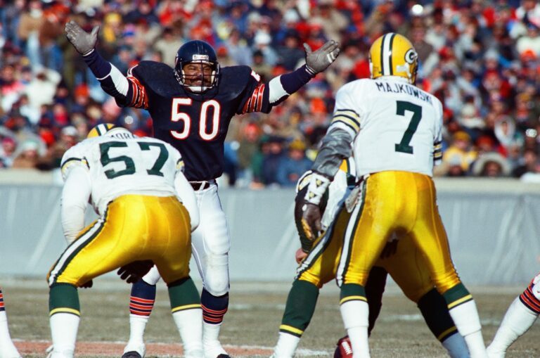 Linebacker Mike Singletary (#50) during the game at Lambeau Field, Oct. 11, 1989, ST-20000203-0007, Chicago Sun-Times collection, CHM.