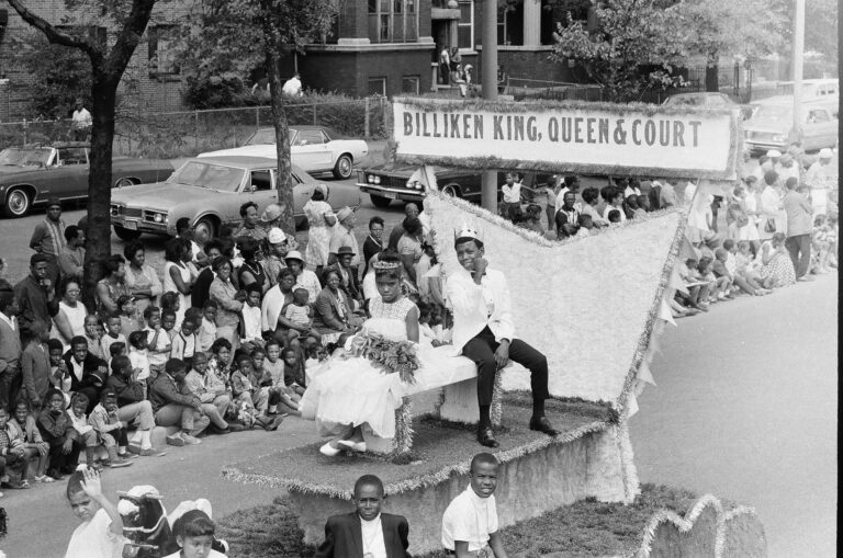 The float for the Bud Billiken Day Parade king, queen, and court, August 10, 1968. ST-40001296-0010, Chicago Sun-Times collection, CHM; Bob Black, photographer