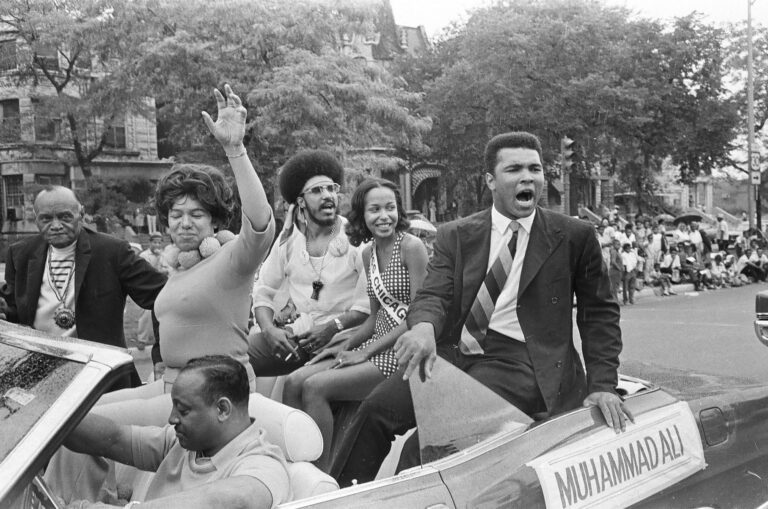 Boxer Muhammad Ali rides in a car in the Bud Billiken Day Parade at 39th Street and Martin Luther King Drive, August 9, 1969. ST-40001287-0033, Chicago Sun-Times collection, CHM
