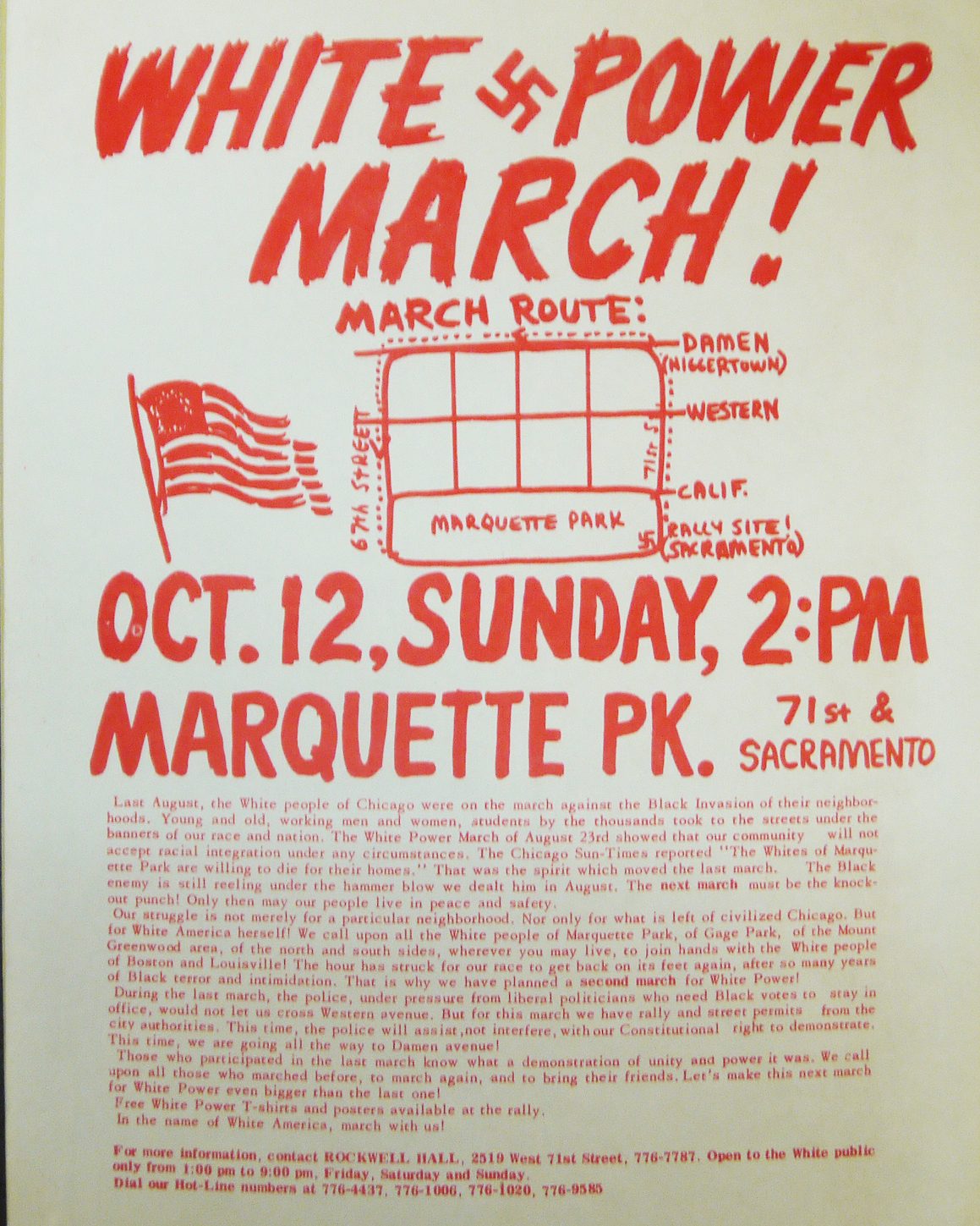 The CCDBR collected evidence of hate groups’ activities in and around Chicago. This flyer from 1975 is for the National Socialist Party of America’s march protesting black families moving into white communities. All images by CHM staff