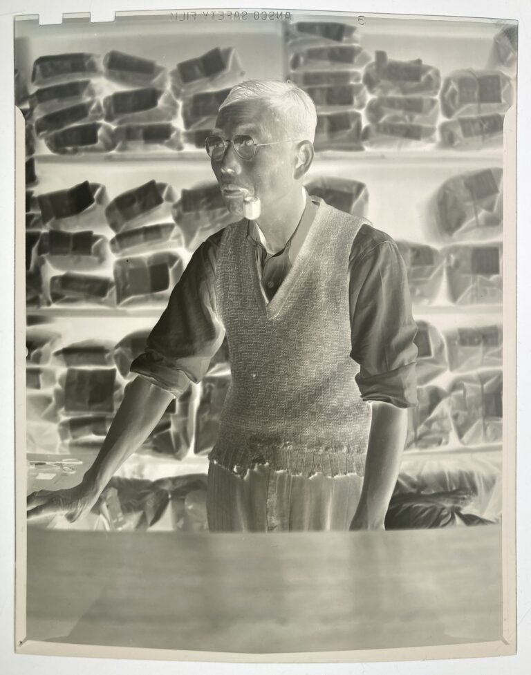 Negative of a Chinese laundryman, Chicago, April 5, 1948; Lyle Mayer, photographer. Lyle Mayer Photograph Collection, CHM, Box 2, Unit #46, S4363. Call Number 1986.0207.