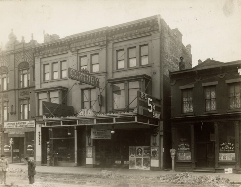 A streetscape showing businesses on the 1600 block of West Madison Street including Sing Wah Hand Laundry (right), Chicago, c. 1910. CHM, ICHi-067272; Charles E. Barker, photographer