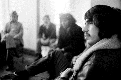 Rudy Lozano listens during a meeting at CASA (the Centro de Accion Social Autonomo, or the Center for Autonomous Social Action), Chicago, February 12, 1975. ST-40001425-0007, Chicago Sun-Times collection, CHM