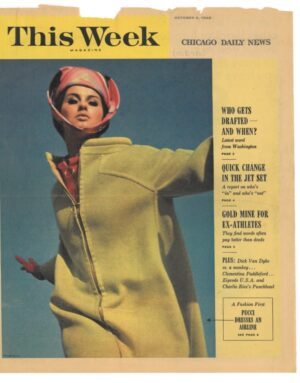 Pucci chose a swing coat style for his Braniff uniform design. It was featured on the front cover of Chicago Daily News’ This Week magazine.