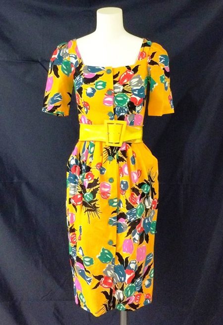 Dress, 1980, Fiorucci; printed cotton with leather belt. Gift of Paul B Presents (1980.75.10ab). Behind-the-scenes photographs taken by CHM staff