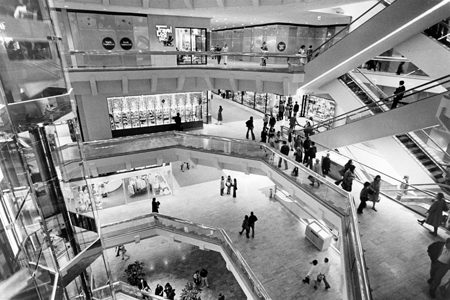 Water Tower Place, a seven-story, 758,000 square-foot vertical mall, opened its doors on Chicago’s Magnificent Mile in October 1975. At the time, it was almost completely vacant with the exception of its anchor stores, Marshall Field & Company and Lord & Taylor. However, due to its almost immediate success and prominent location on North Michigan Avenue, the mall’s retail spaces were completely leased by 1976.