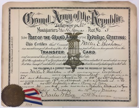 A certificate of transfer from the GAR, Department of Illinois records, box 10, folder 2