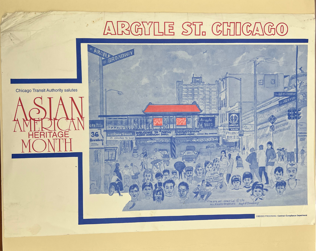 Chicago Transit Authority Poster reading “Argyle St. Chicago: Chicago Transit Authority salutes Asian American Heritage Month.” CHM, 2001.0229 PPL; Asian American Small Business Association collection of visual materials, 1991–2001. Photograph by CHM staff