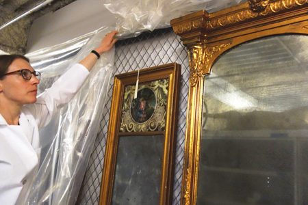 Conducting a collections inventory can be a challenging assignment, especially at an institution like this one, which has an extensive artifact collection that’s been accumulating for nearly 150 years. However, we developed a plan and taught the interns and volunteers the importance of executing such a project. We commenced by pulling each artifact from its designated shelf, photographing and measuring each item, and then logging pertinent acquisition information onto an inventory worksheet. Approximately once a week, these worksheets would be reviewed for consistency, and all relevant information updated in the collections database, including the location of each object. On several occasions, historical provenance would be researched to ensure that acquisition-related information was correct and did not conflict with another artifact. When you have three similarly styled gilded mirrors located on the same storage rack, it’s important to verify your data!