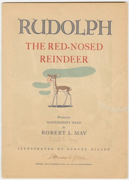 Cover of an original Rudolph the Red-Nosed Reindeer written for Montgomery Ward & Co. by Robert L. May and illustrated by Denver Gillen, 1939. CHM, ICHi-068483
