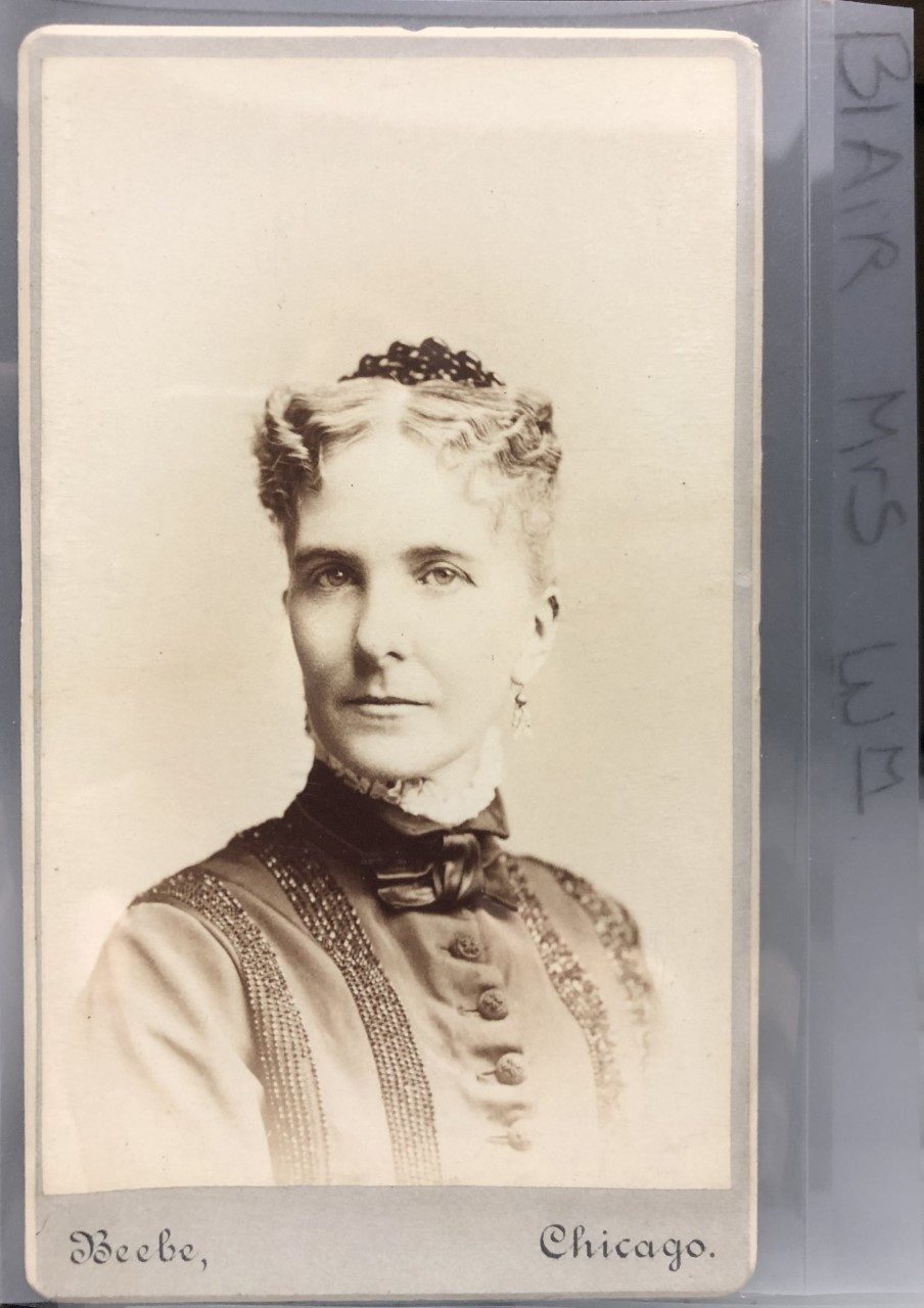 Carte de visite of Mrs. William Blair (see bib# 31434). Thanks to Mayfield’s research, the catalog record for this photograph is now updated with a heading that reflects Mrs. Blair’s full name, “Blair, Sarah Maria Seymour, 1832–1923.”