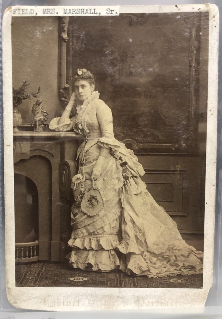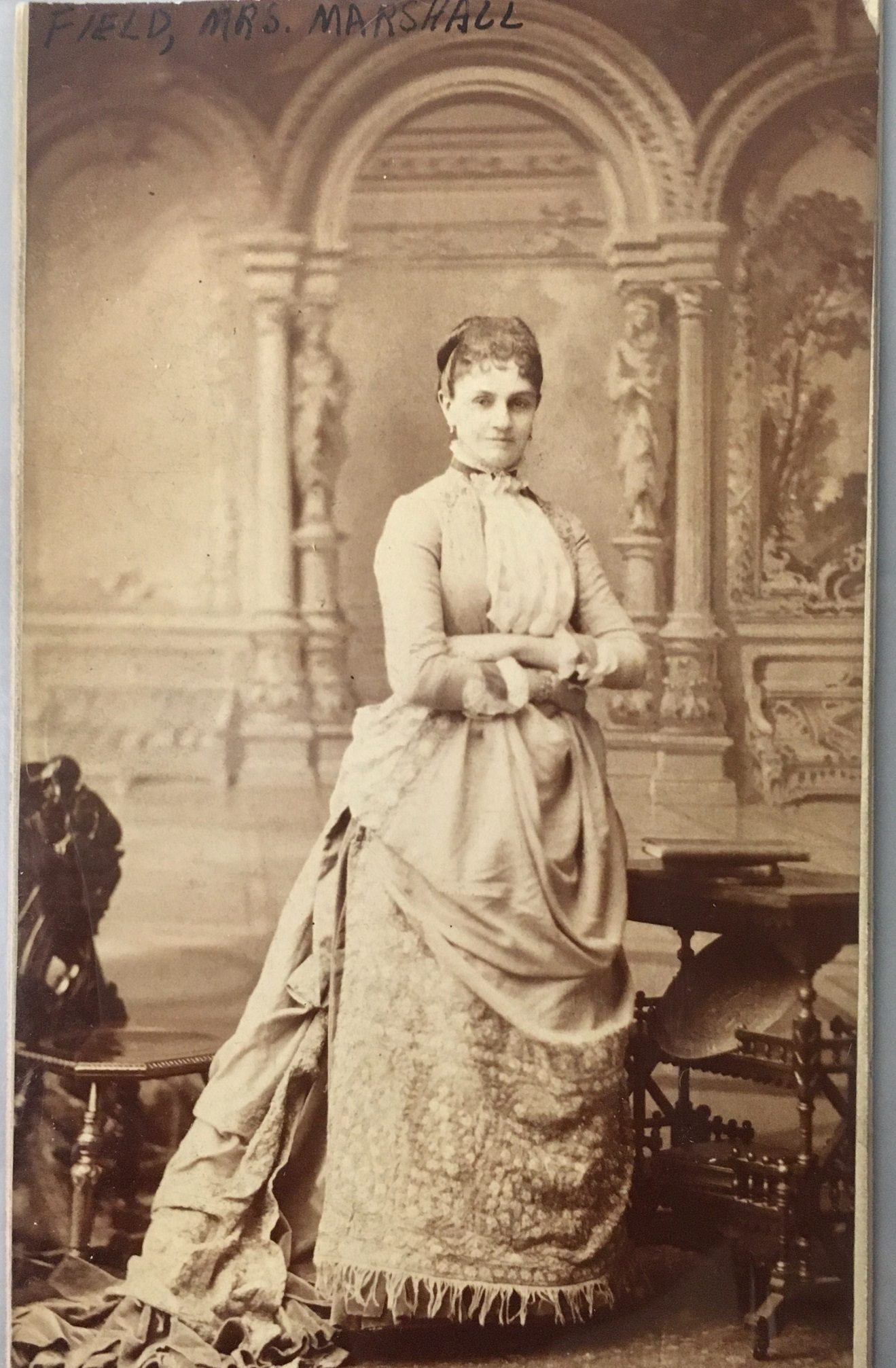 [L] Mrs. Nannie Douglas Scott Field, the first wife of Marshall Field I. [R] Mrs. Delia Macomber Spencer Field, the second wife of Marshall Field I. In examining the photographs, we also discovered these cabinet cards had been incorrectly recorded as cartes de visite. We updated the catalog records to reflect this.