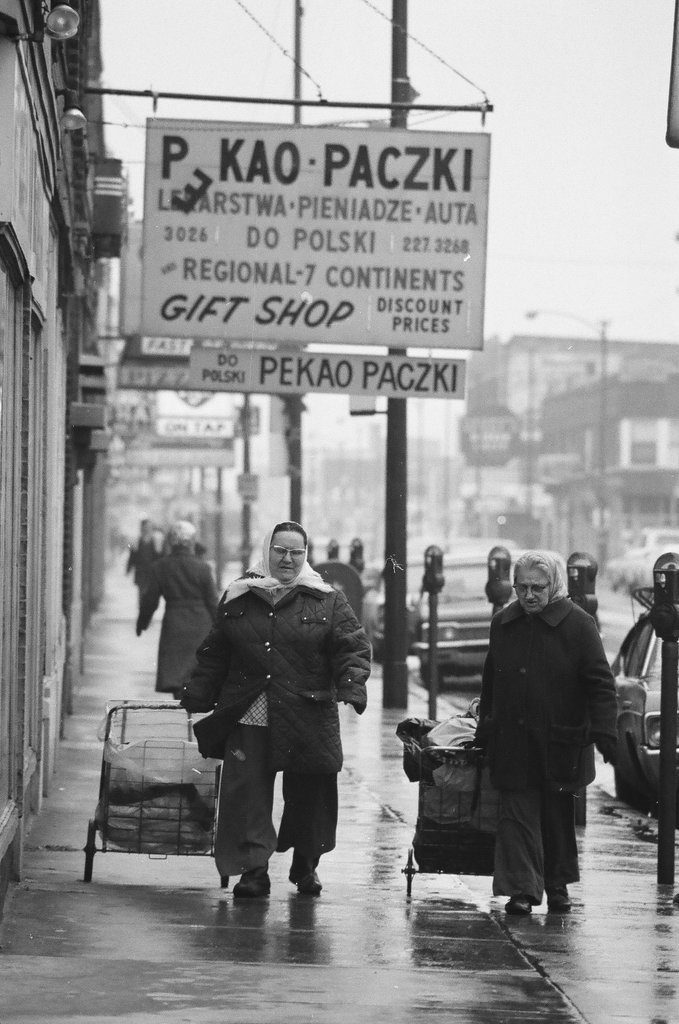 Pedestrians on North Milwaukee Avenue in Avondale, Chicago, January 24, 1975. ST-90003274-0020, Chicago Sun-Times collection, CHM