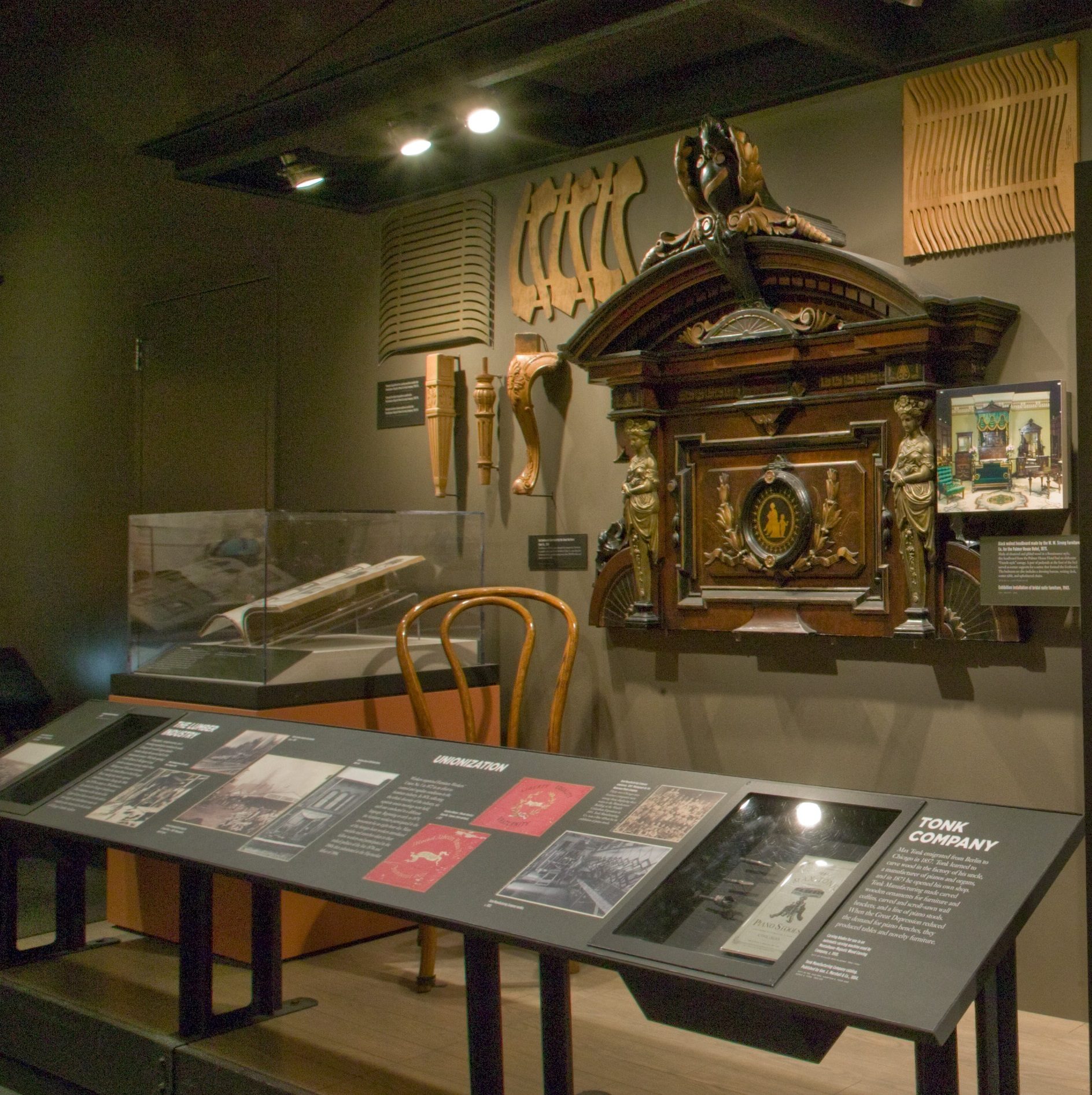 This ornate headboard (1873) on the right was part of a bridal suite in the second Palmer House. Made of ebonized and gilded black walnut in a Renaissance style, the headboard was surmounted by a French-style canopy. It was made by W. W. Strong Furniture Co., Chicago’s premier furniture dealer and manufacturer of the 1870s. You can find it on display in Chicago: Crossroads of America.