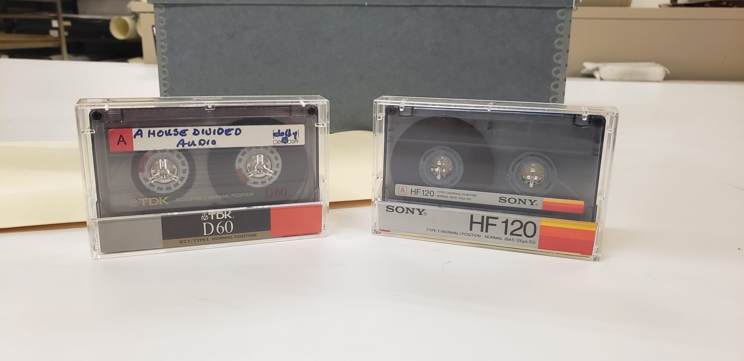 Cassettes, such as these, contain many important archival materials, including oral history interviews and recordings of lectures held at the Museum.