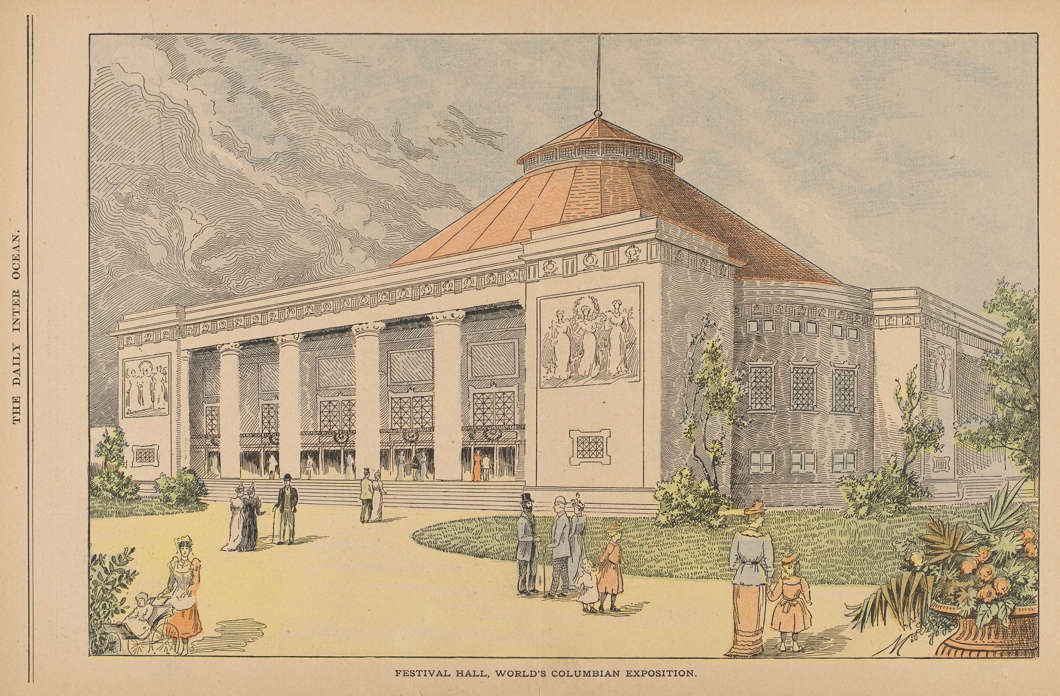 Color illustration titled “Festival Hall, World’s Columbian Exposition,” Chicago, 1893. Published in The Inter Ocean Illustrated Supplement. CHM, ICHi-089488