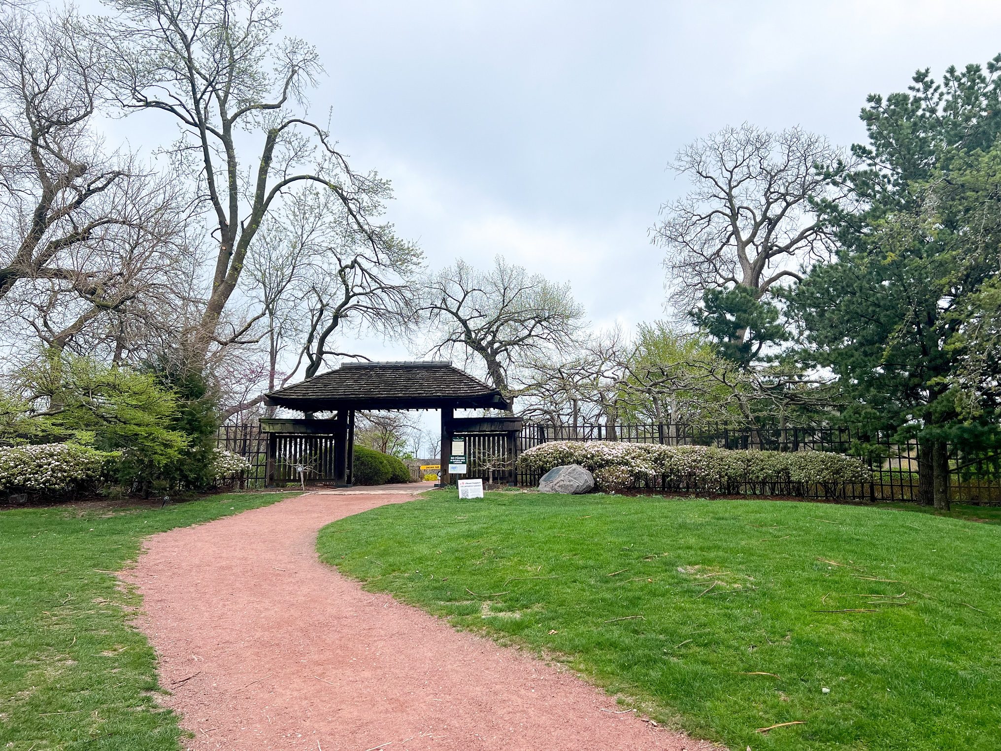 Entrance to Garden of the Phoenix and cherry blossoms blooming at Jackson Park, 2023. Photographs by Rebekah Coffman