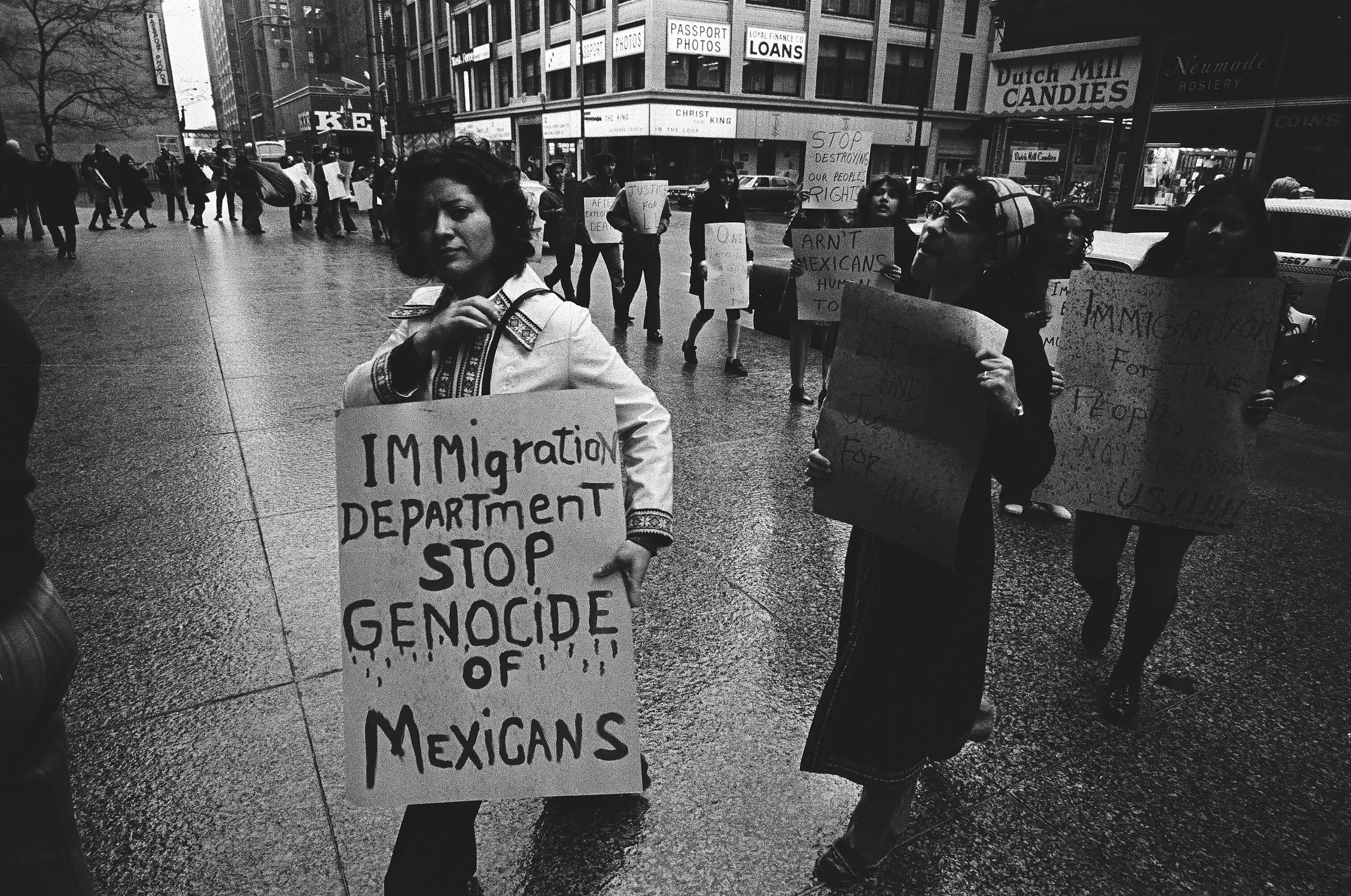 Protest at the Federal Building, 230 South Dearborn Street, over shooting of undocumented Mexican immigrant, Chicago, November 10, 1972. ST-14002237-0004, Chicago Sun-Times collection, CHM