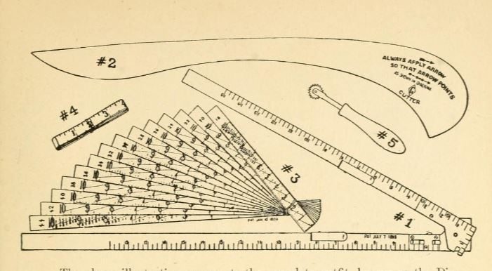 Object #3 in this diagram is what the original apportioning rulers for this system looked like. Instruction Book by the Diamond Garment Cutter Correspondence School, 1903, pg. 3)
