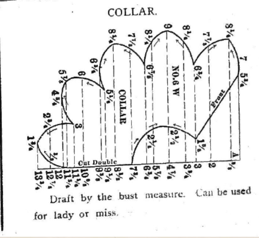Even if you’re familiar with how clothes are put together, creating a finished garment from these pattern pieces can be quite challenging because there are little to no directions of how the pieces need to be assembled. Studying pictures of extant garments can be helpful and I also recommend starting with something simple like these two detachable collars below, both taken from the 1897 Diamond Garment Cutter Book of Diagrams, page 19. Once you get the hang of it, you’ll have literally hundreds of free, historical patterns at your fingertips! Happy sewing!