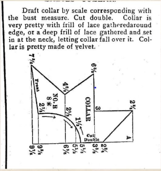Even if you’re familiar with how clothes are put together, creating a finished garment from these pattern pieces can be quite challenging because there are little to no directions of how the pieces need to be assembled. Studying pictures of extant garments can be helpful and I also recommend starting with something simple like these two detachable collars below, both taken from the 1897 Diamond Garment Cutter Book of Diagrams, page 19. Once you get the hang of it, you’ll have literally hundreds of free, historical patterns at your fingertips! Happy sewing!