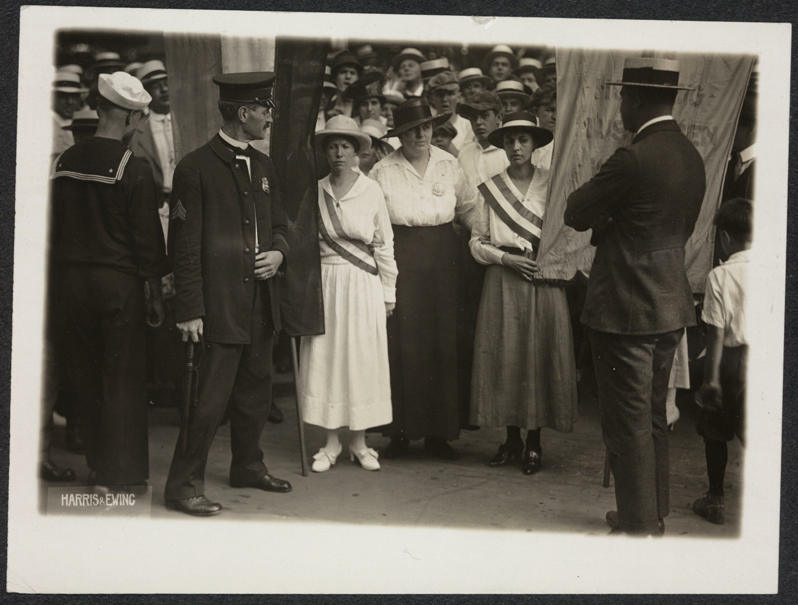 August 1917 arrest of White House picketers Catherine Flanagan (left), and Madeline Watson (right). Photograph by Harris & Ewing,Library of Congress