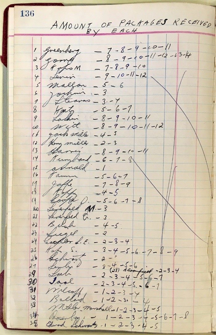 List of soldiers who lived in Chicago during World War II and the packages sent to each by Sylvia Hornstein and her husband. Sylvia Hornstein papers