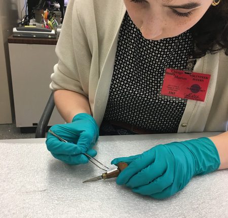 Because an accession number gives no clue about the object’s history or purpose, treasure hunters should be curious. Each artifact brought endless questions: Who originally owned this? Why was it donated? When is it from? What even is this? One of my favorite examples of this was a hooked tool we guessed could be an old-fashioned corkscrew. Imagine our surprise when research revealed it was a tooth extractor from the late 1880s!