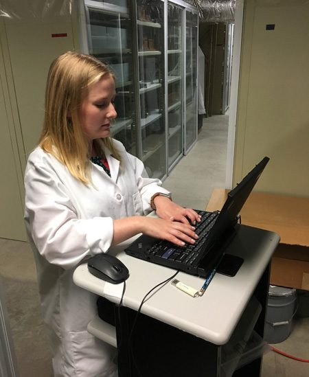 The inventory process involves pulling objects from their storage space, then measuring and photographing them. It also requires recording an object’s location, visual description, and accession number, which is a unique code the Museum assigns to an artifact when it enters the collection. This feature is the key to research and one of the first things we look for during inventory. I quickly learned that a good treasure hunter has to have patience. On our first day of inventory, we came across a set of engraving tools owned by Olaf Thorsson, a Swedish immigrant who used them in the late 1800s. Though they were similar, each tool varied in length and description. On the fourth floor, we photographed, measured, and described each tool. Then in the collections office, we relabeled each one using archival paper and acrylic resin. In total, we did this for more than seventy tools.