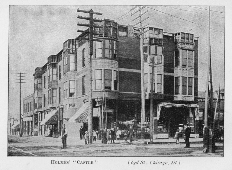 Exterior view of residence of Herman Webster Mudgett, a.k.a. H. H. Holmes, on 63rd Street, Chicago, c. 1896. Published in The Holmes-Pitezel Case: A History of the Greatest Crime of the Century. CHM, ICHi-027827