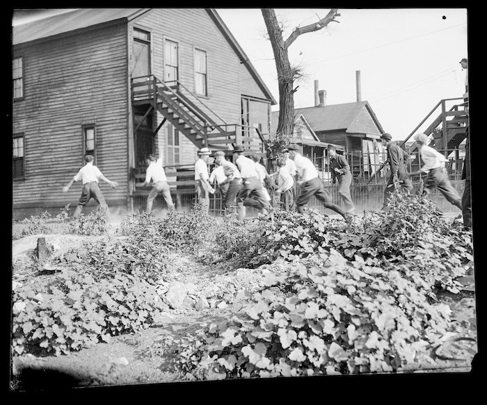 Victim being stoned and bludgeoned under corner of house during the 1919 Chicago Race Riot. CHM, ICHi-065493; Jun Fujita, photographer