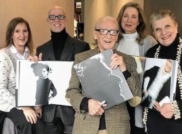 My last photograph taken with Victor was at a Fashion Group International Chicago event late last year. Pictured with us is Dennis Minkel, Victor’s longtime assistant, studio manager, archivist, and keeper of the flame. All of us are indebted to Dennis for his support of the Costume Council. We are holding the photographs of us that appear in Victor’s latest book, Skrebneski Documented. At the time of his death, Victor was working on two more books.