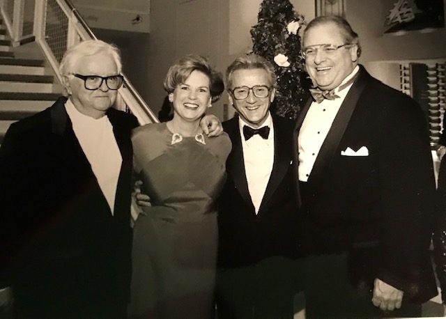 Geoffrey Beene (left) was honored in 1996 with the Costume Council’s Designer of Excellence Award. Pictured with him is past Costume Council president Lawrie Weed, Victor, and Ed Weed.